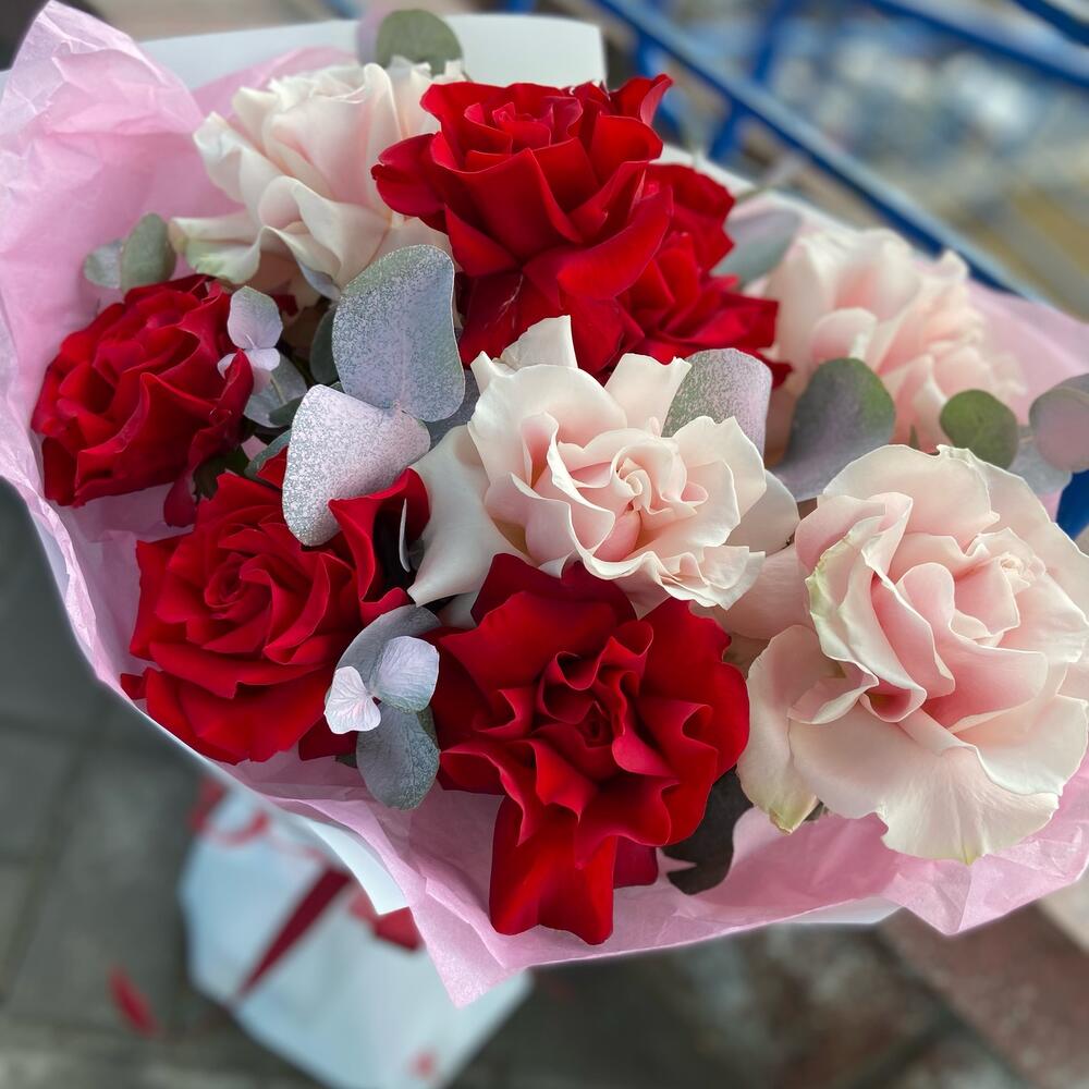 Букет из французских роз с эвкалиптом в Серафимовиче